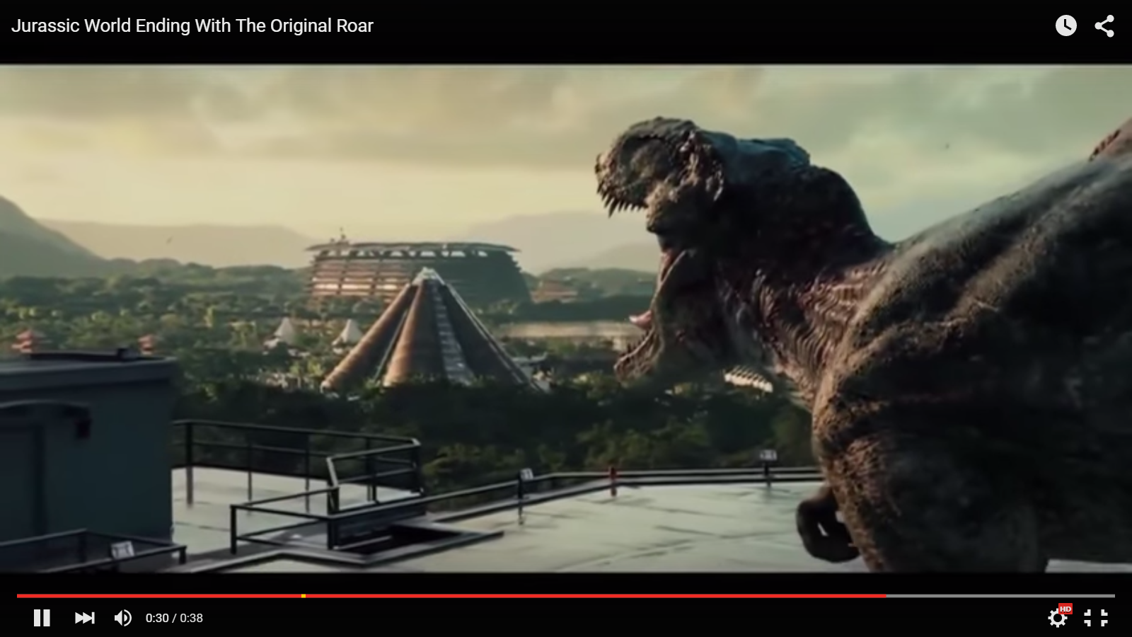 שוט הסיום הנבון של עולם היורה הופך את מערך הכוחות הזה על ראשו. במקום האריה שואג טי-רקס, מלך החיות הקדום, ובגלל השינוי בנקודת התצפית סופו הטוב של הסרט בו המבקרים מחולצים מפארק השעשועים שהפך למלכודת מוות של דינוזאורים משתוללים מתערער ואנחנו נגררים חזרה פנימה, לכודים מחדש מאחורי גבה של הדינוזאורית הרצחנית. מאדונים שהתעשייה נועדה לשרת אותם, אנו הופכים לשבויים של מפלצת שהכוח שלה יצא משליטה. המלך הקודם איננו, יחי המלך החדש.