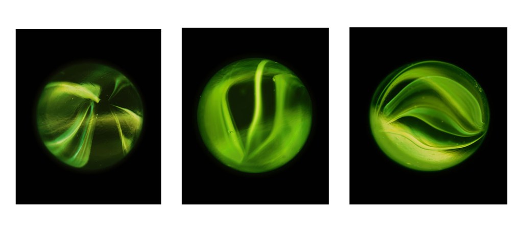 עצם מוכר עובר הזרה באמצעות היסט כלשהו – הגדלה, הקטנה, שינוי הקשר, התקה חומרית וכדומה. תודות להזרה הזו, עבודת האמנות מאפשרת להתבונן במוכר בעיניים חדשות. העט כמעט נשמט משעמום רק מלכתוב את התיאור הזה. כמה עשרות, אולי מאות, יצירות מן הסוג הזה כבר ראינו וקראנו? זה לכאורה בדיוק מה שקורה גם בתצלומים האלה. ג'ולות, שעשוע הילדות המוכר, עובר הגדלה והיסט צבעוני. בעקבות ההיסט הזה אנחנו, הצופים, נחשפים לכדורים הגדולים, המסתוריים למראה, מלאי ההוד שעל הקירות. אנו רוכנים בסקרנות אל התווית, מגלים שמדובר בג'ולה ובתודעתנו נפתח הפער האמור בין העצם המוכר לבין תצורתו החדשה שלפנינו. פער שבתגובה אליו פושט בנו מינון כזה או אחר של ההנאה המוכרת לעייפה (עד כדי אירוניה) שבלראות את העולם בעיניים רעננות. האם זה באמת הכל? נדמה לי שמי שישהה אפילו מעט עם סדרת התצלומים הזו לא יוכל לפתור אותה מעליו בקלות כזו, ואם ישהה אתה דיו יסתכן בלגלות שלא יוכל לפתור אותה מעליו כלל.